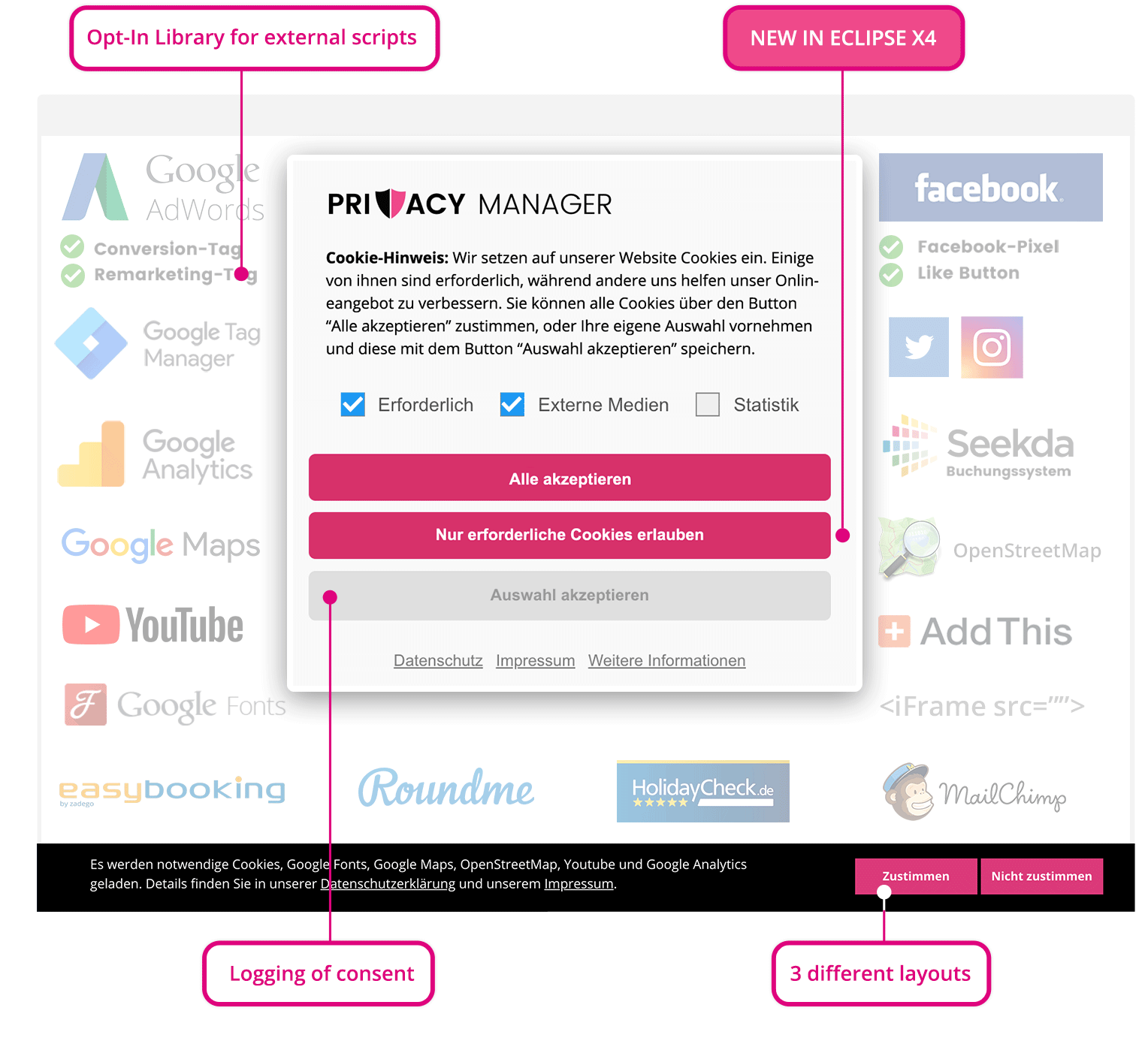 GDPR module for opt-in and opt-out. Including opt-in library, logging and different layouts.